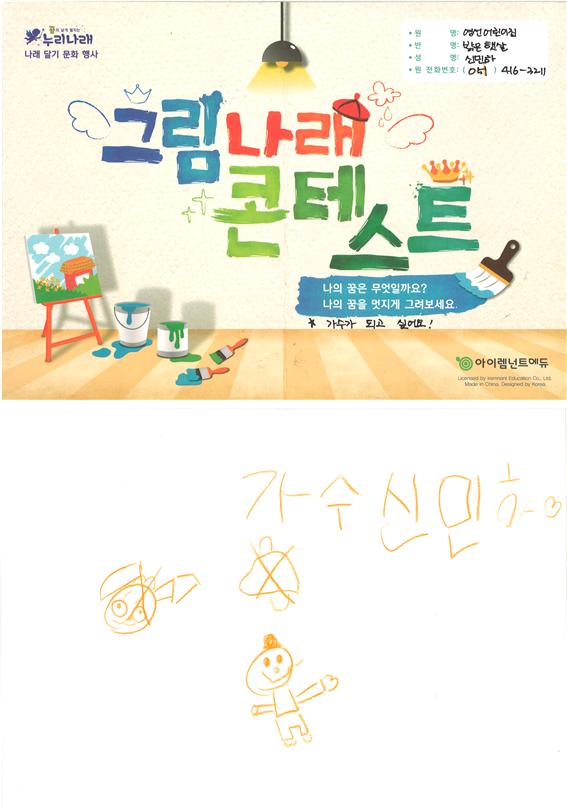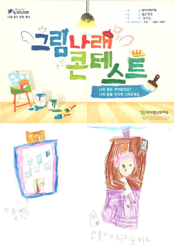 누리나래 영선어린이집 누리나래 그림대회 제출합니다. 페이지 정보 작성자 이은선 댓글 0건 조회 11,519회 작성일 22-05-27 14:53 본문 부산 영도구 영선어린이집 누리나래 그림대회 제출합니다. 검색 목록 글쓰기 이전글영선어린이집 누리나래 그림대회 제출합니다.2 22.05.27 다음글나의꿈은 브라키오사우루스 22.05.26 댓글목록 댓글목록 등록된 댓글이 없습니다.